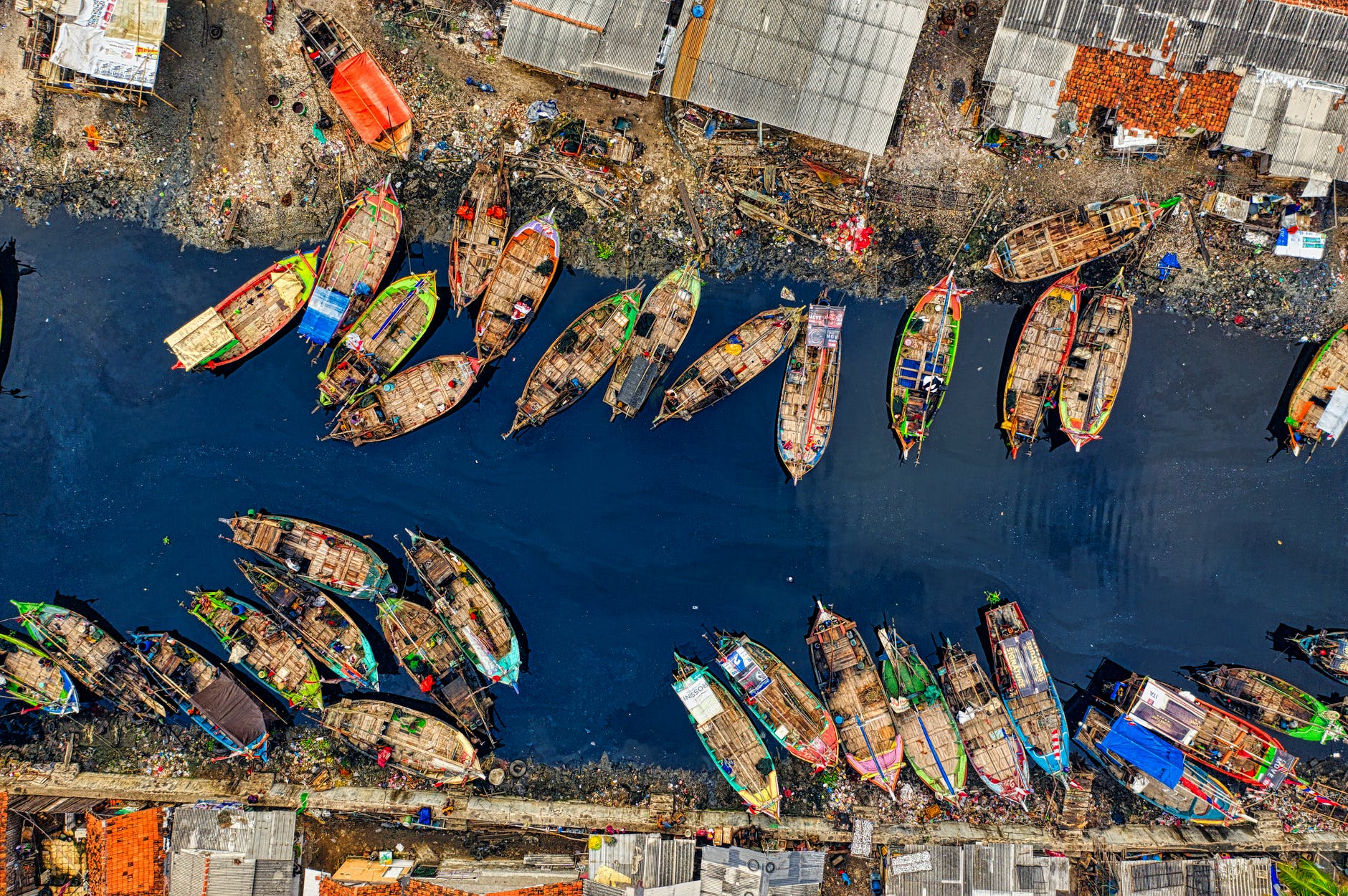 aerial view of fishing boats docked along the river Published May 18, 2020 at 1880 × 1250 in aerial view of fishing boats docked along the river Photo by Tom Fisk on Pexels.com